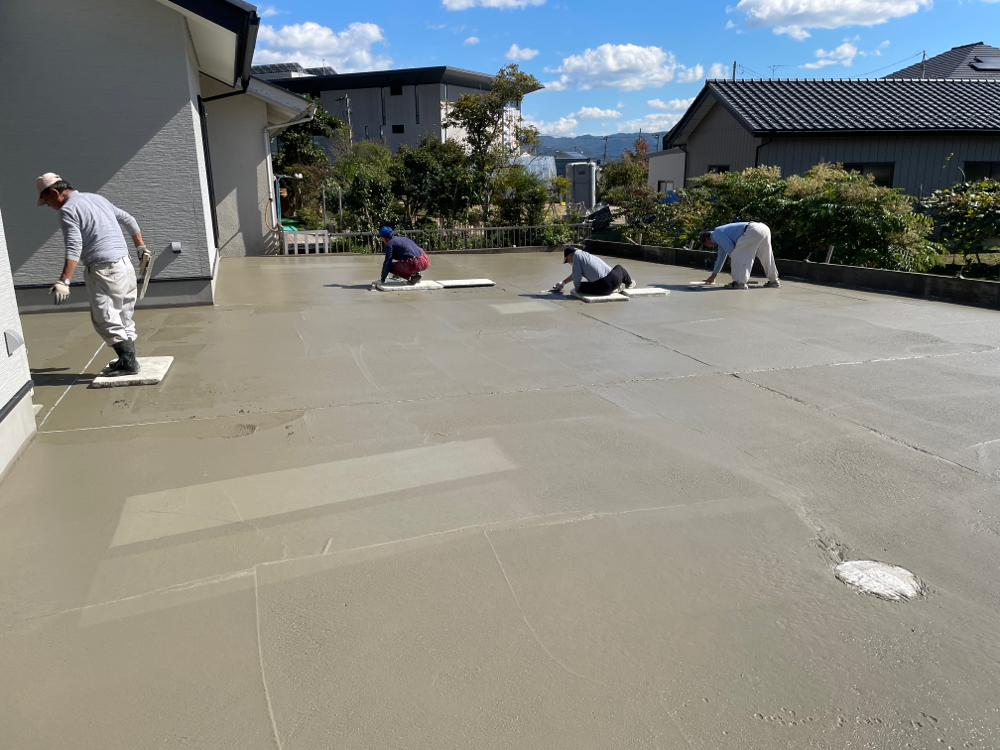 エクステリア · 2022/10/19 土間コンクリート打設 天気に恵まれた中、土間コンクリートを打設いたしました。 10月とはいえ、暑い中、職人さんたちに感謝です。 tagPlaceholderカテゴリ: